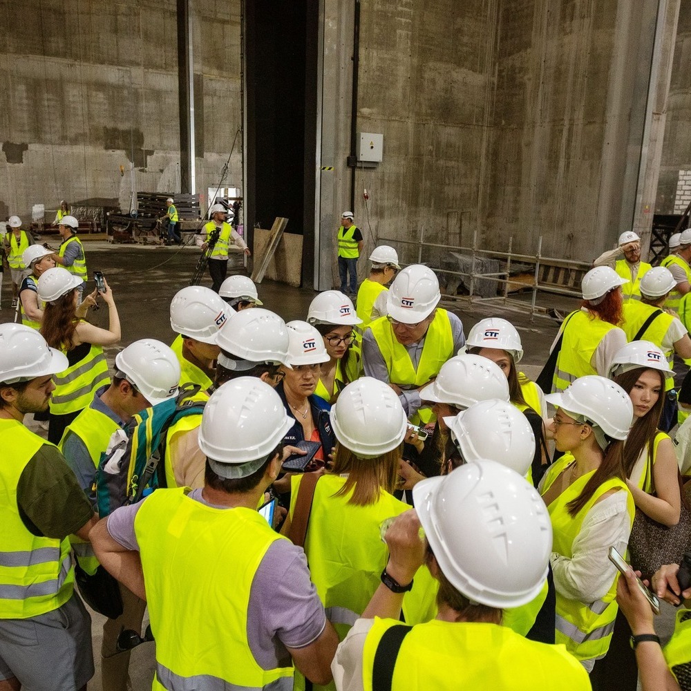 Участники пресс-тура, среди которых представители региональных и федеральных СМИ, а также блогеры, впервые посетили строительную площадку филиала Большого театра на о. Октябрьский.